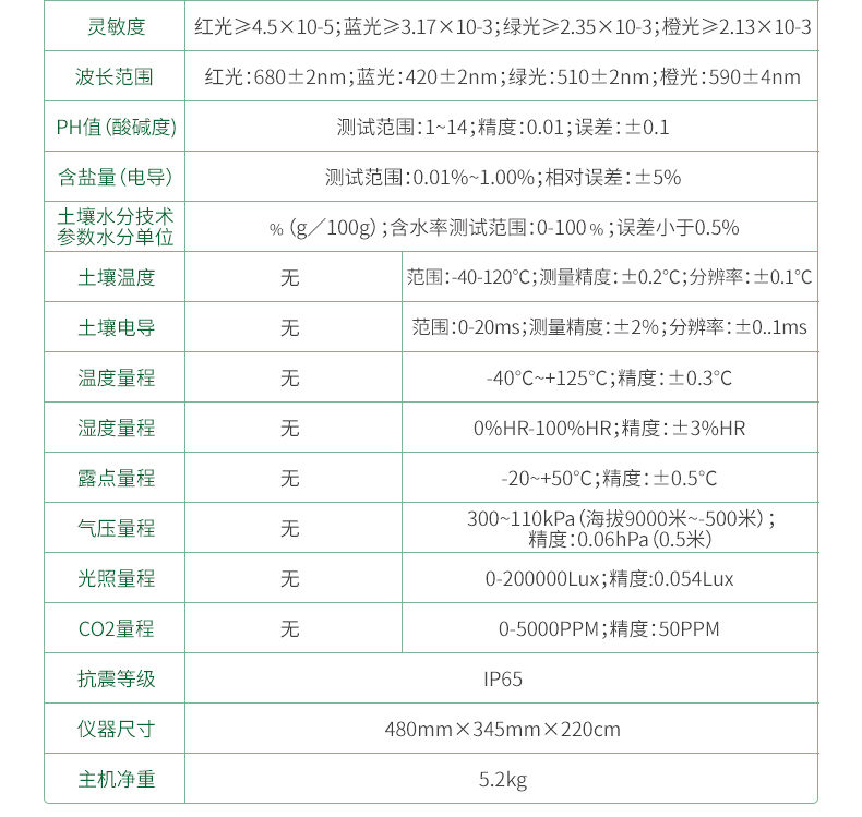 11.土壤水分技術參數水分單位:﹪(g/100g);含水率測試范圍:0-100﹪;誤差小于0.5%