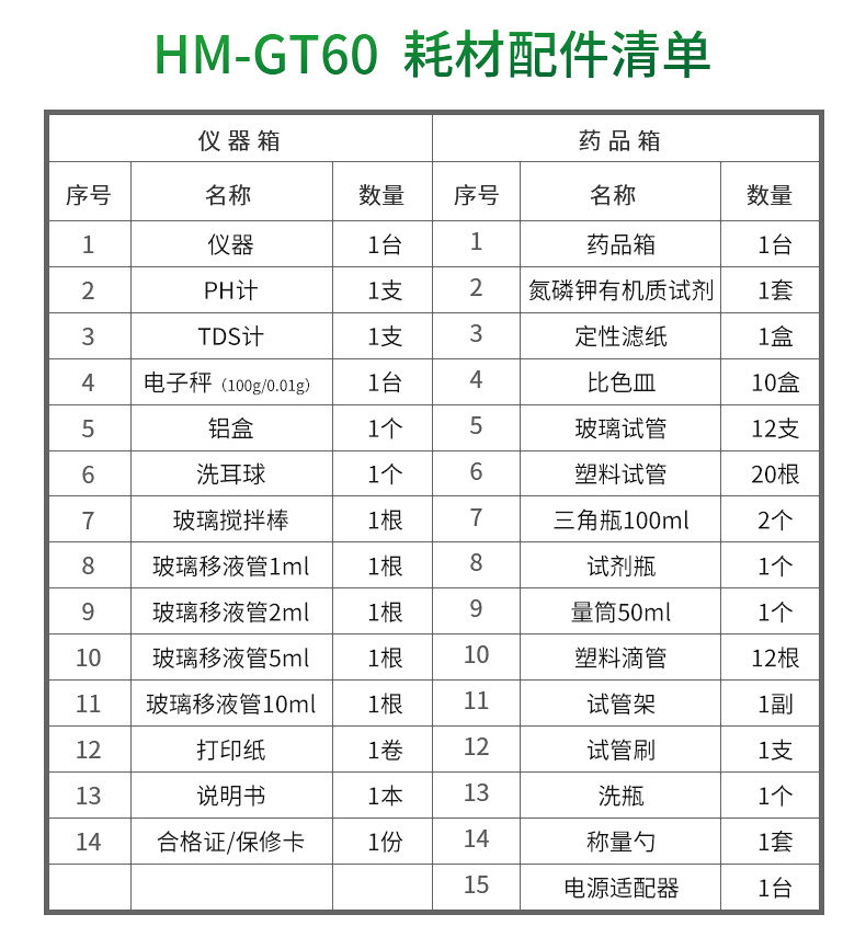 2、肥料養分:●單質肥:氮肥中銨態氮、肥料硝態氮、尿素氮、縮二脲、磷肥中磷、磷肥中水溶性磷、鉀肥中鉀;●復合肥全氮、復合肥全磷、復合肥全鉀;●有機肥全氮、有機肥全磷、有機肥全鉀、有機肥硝態氮、有機肥速效磷、有機肥速效鉀、有機肥酸解氮、有機質;●水溶性腐植酸(風化煤)、水溶性腐植酸(褐煤)、水溶性腐植酸(泥炭)、游離態腐植酸(風化煤)、游離態腐植酸(褐煤)、游離態腐植酸(泥炭);●水溶肥全氮、水溶肥全磷、水溶肥全鉀;●葉面肥全氮、葉面肥全磷、葉面肥全鉀;●各種肥料微量元素:肥料鈣、肥料鎂、肥料硫、肥料硅、肥料硼、肥料鐵、肥料銅、肥料錳、肥料鋅、肥料氯;●肥料重金屬:肥料鉛、肥料砷、肥料鎘、肥料鉻、肥料汞。