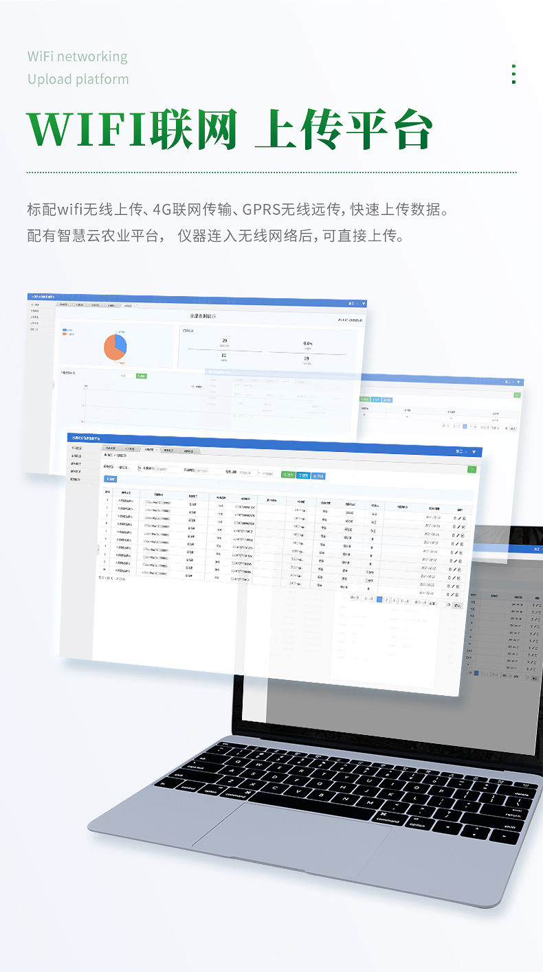 ★13、配有智慧云農業平臺,儀器連入無線網絡后,可將檢測數據可選擇性或批量無線上傳,方便用戶進行數據管理和長期分析。