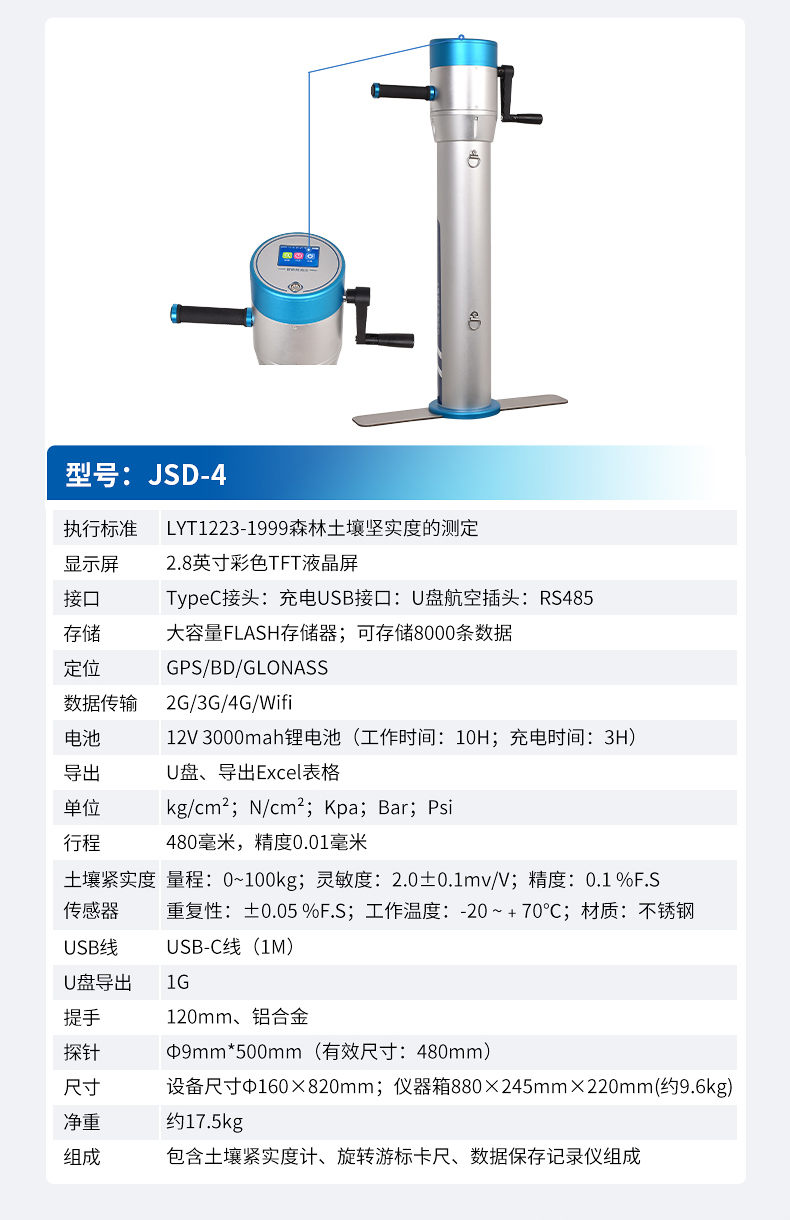 設備包含土壤緊實度計、旋轉游標卡尺、數據保存記錄儀組成
